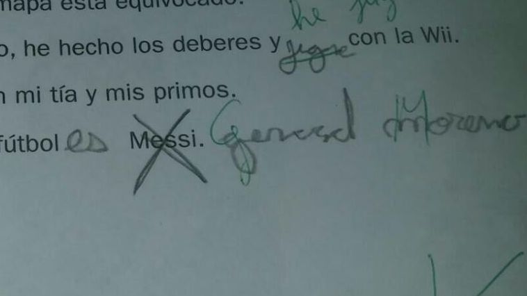 The mother of the girl tweeted to Moreno a photograph of her daughter’s homework, which included the sentence: “My favourite football player is Messi (which she crossed out and added Moreno’s name next to it).”