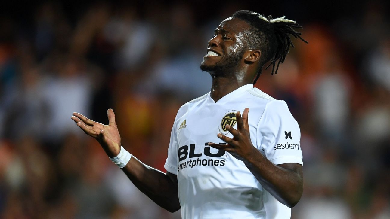 Michy Batshuayi reacts during Valencia’s La Liga match against Atletico Madrid.