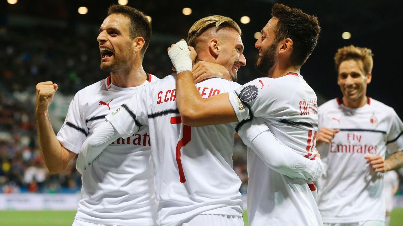 Suso and Samu Castillejo scored with long-range left-foot shots after the break and, although Filip Djuricic pulled one back for Sassuolo, Suso fired in a fourth in stoppage-time.